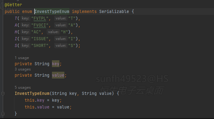 InvestTypeEnum 枚举也可以通过 key 和 value 进行映射 ,可以改为