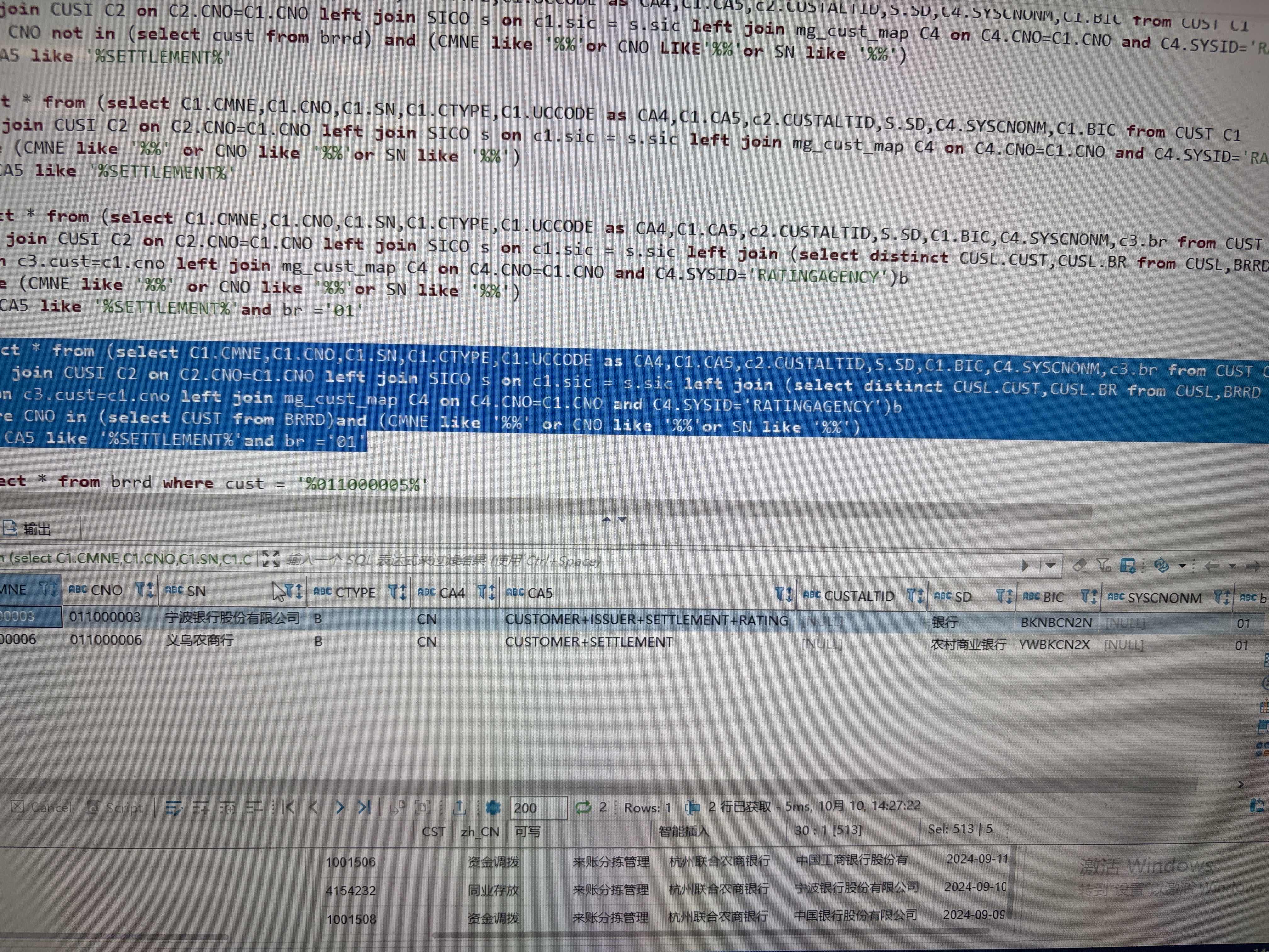 (cust的cno为11,brrd的cust字段为10)
