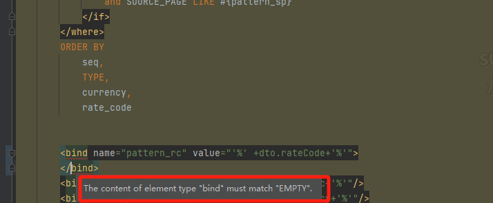 提示bind类型标签必须匹配空?这是怎么回事,查看例子: